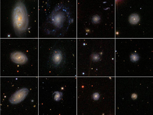 Några (andra) Vintergator plockade från bland tusentals spiralgalaxer. (Bild: SDSS)