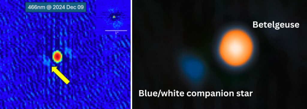 Den röda superjätten, stjärnan Betelgeuse, fortsätter att fascinera. Nyligen har bevis börjat samlas för att denna gigantstjärna kan ha en mycket mindre kompanjonstjärna. Kompanjonen har fått namnet Siwarha och verkar ligga i omlopp på så pass låg höjd över Betelgeuse yta att det blir mätbara svallvågor i jättens atmosfär. Stämmer detta kan det ge spännande insikter om en del av Betelgeuse många och delvis oförklarade egenheter.